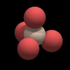 The shadows in the rendering indicate that the three SiO4 tetrahedra do not form a closed triangle - this would be an impossible geometrical figure.