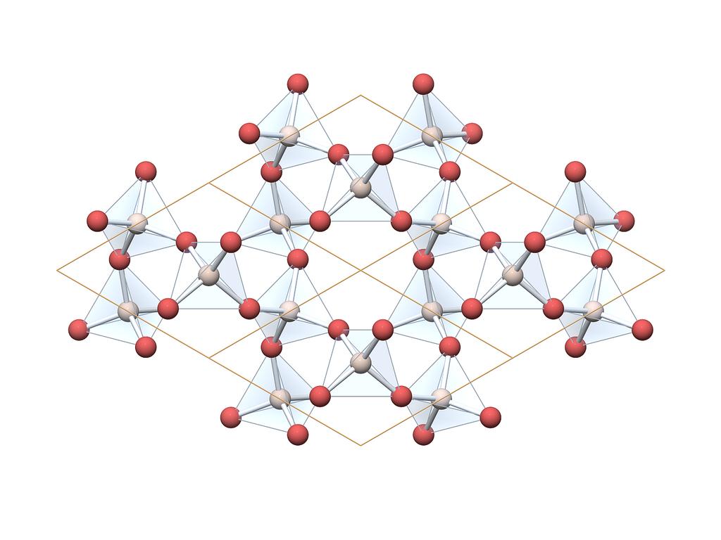 On top there are 4 isolated unit cells that are simply pushed together at the bottom. This assemblage already shows all structural elements of quartz: