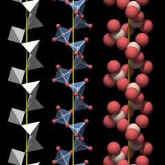 Although they contain the same types of tetrahedra, the two helices differ in polarity (compare to Fig.5.06). Whether a tetrahedron points downwards or upwards depends on the position of the vertical axis that defines the helix.